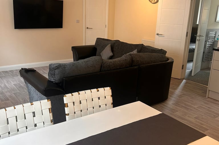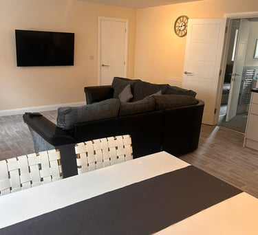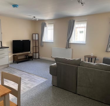 A modern, fully furnished one-bedroom apartment designed for comfort and convenience. The apartment features an open-plan kitchen and living area, a comfortable double bedroom, and a contemporary bathroom. Ideal for contractors and professionals, it includes free high-speed Wi-Fi, Netflix, and all essential amenities for short or longer stays. Accommodation near A38 Burton upon Trent.
